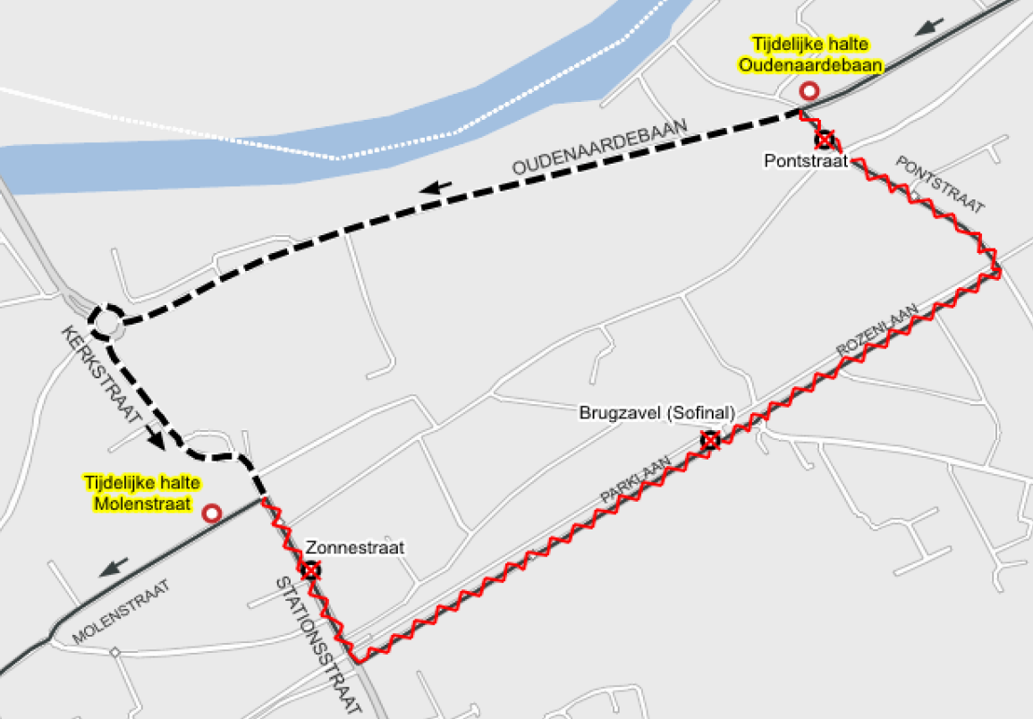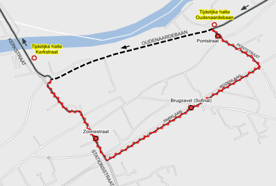 tijdelijke haltes: Oudenaardebaan en Kerkstraat
