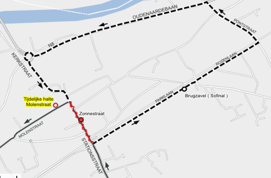 tijdelijke haltes: Oudenaardebaan en Molenstraat