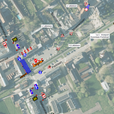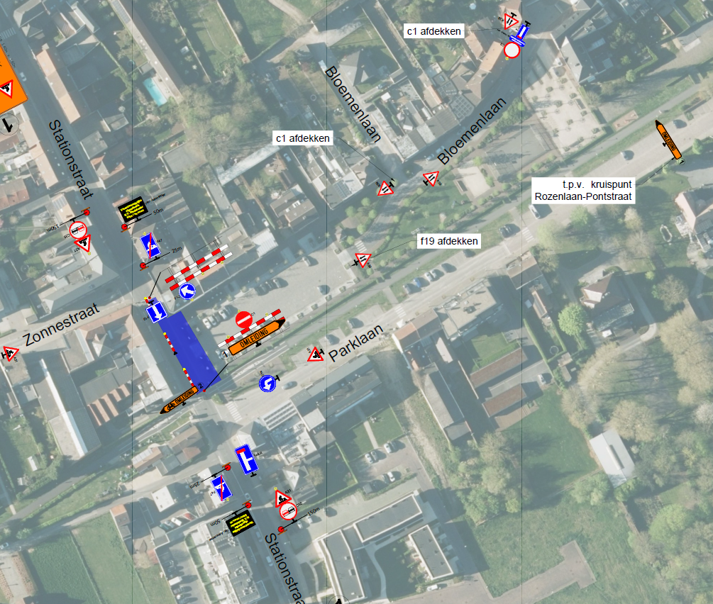 - Voertuigen komende van uit Ronse worden omgeleid via de Parklaan - Rozenlaan - Pontstraat - N8